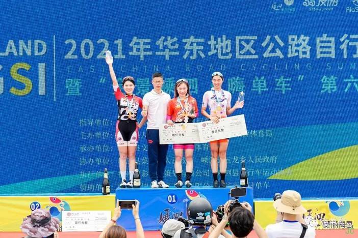 来自IGPSPORT-瑞豹车队的407号郭丹,来自志庆-Java车队的444号傅诗琪和来自羚锐制药车队的419号谢翠峰斩获女子组一二三名。