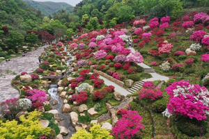 春光灿烂的日子,杜鹃谷内漫山遍野的杜鹃花,盛开在虫鸣鸟啼中、怒放在亭台楼阁间、盛绽在泉水叮咚中,姹紫嫣红,馨香四溢,把杜鹃谷绘成一幅壮丽的春日风景图。