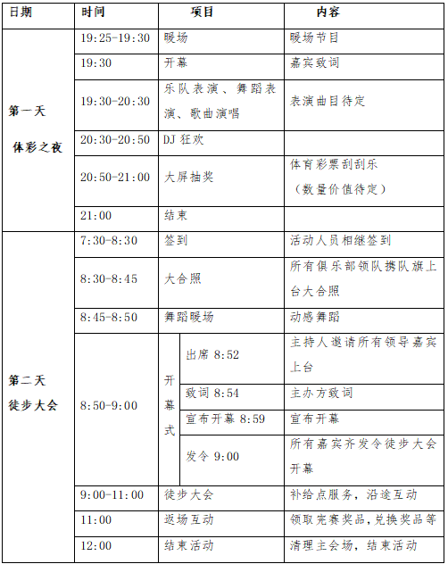 (2)11月23日活动日:徒步大会,7:00开始签到入场,8:50开幕式,9:00发令出发;
