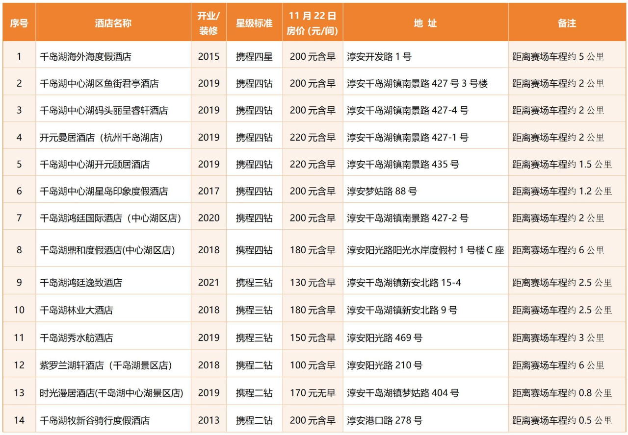 地址:淳安阳光路210号(距离赛场车程约6公里)