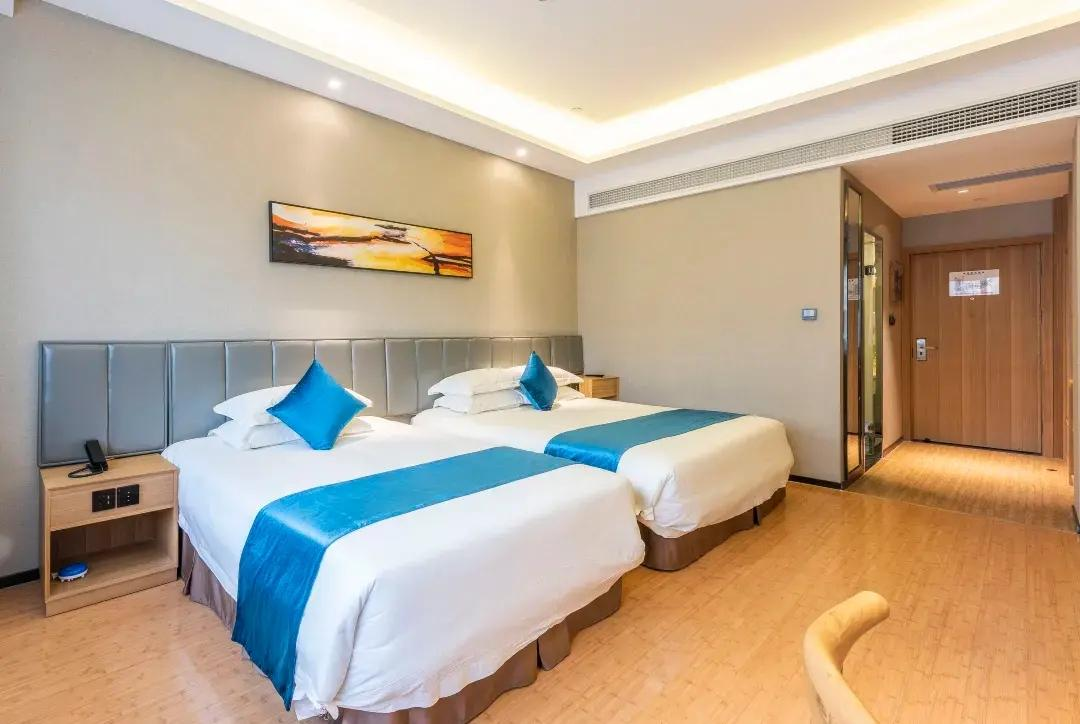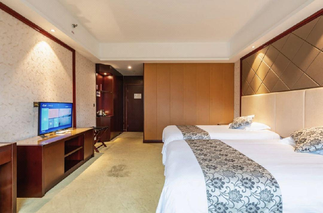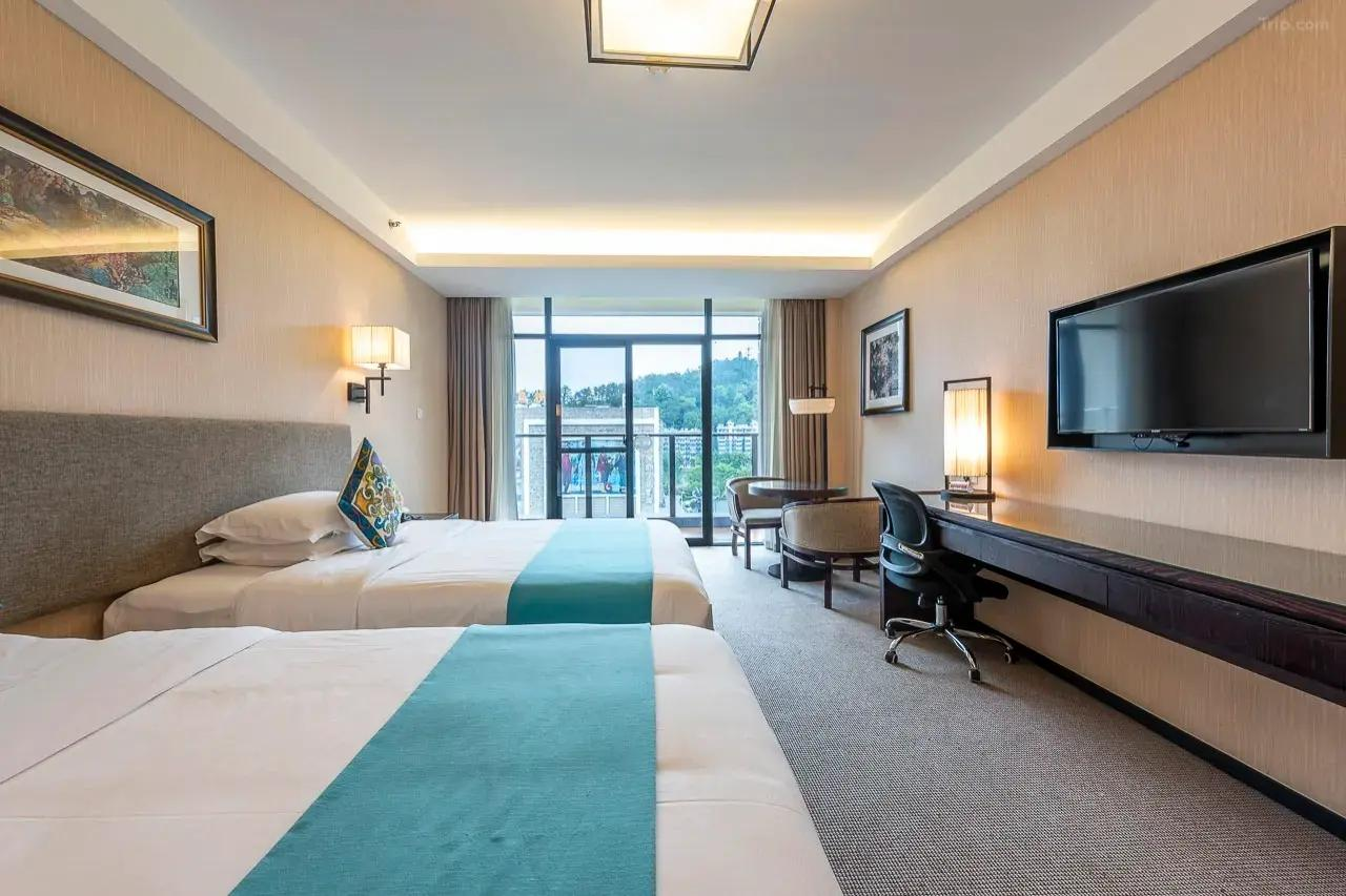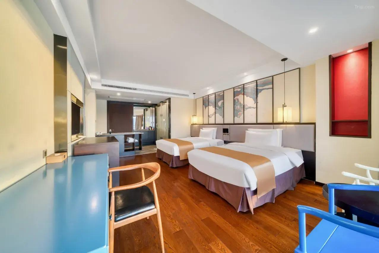 酒店环境优美、设施先进、格调高雅,拥有现代简约的舒适客房,包括豪华湖景套房和家庭套房。房内皆配备宽带互联网接口、国际国内长途电话、卫星频道电视、迷你酒吧、冰箱、私人保险箱、独立控制的中央空调和供暖系统。酒店8、9层为行政楼层,附有专属行政酒廊,并配备独立会议室。同时,这里无线WIFI全覆盖,楼层客房还设有非吸烟楼层、无障碍客房及连通房,满足不同住客所需。