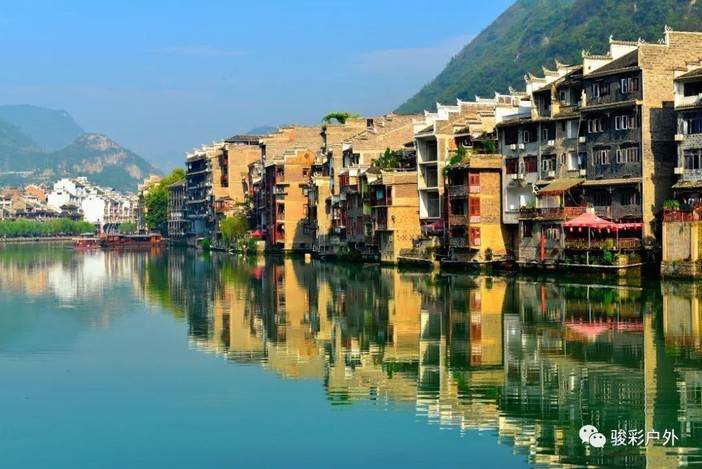 镇远古城是“山雄水美”之地,中国山地贴崖建筑文化博物馆,位于舞阳河畔,四周皆山,河水蜿蜒,以“S”形穿城而过,北岸为旧府城,南岸为旧卫城,远远观看特别像是太极图。城内古街古巷曲径通幽,石桥城垣错落有致,碧水晨雾姿态万千,春江渔火诗意盎然,有雄伟奇特,更蜚声名外的青龙洞古建筑群和明清居等。其中每一块青砖黛瓦,高封火墙,飞檐翘角,雕梁画栋都泣诉着千年古镇的沧桑。