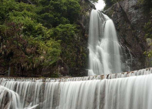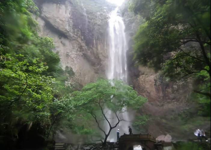 站在潭西边的山下,那珍珠似的雾珠还飘洒到人们的脸面上,一片凉意袭来,顿觉心旷神怡。天愈干旱,飞瀑洒下的雾珠愈细,要是下了几天雨之后,那飞瀑就会砰然作声,“声振万壑惊春雷”,犹如万马奔腾。