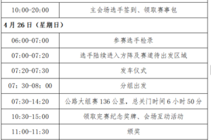 )关门距离及道路解封时间为了保证参赛选手比赛安全、顺利,比赛期间比赛路线各段设关门时间(道路解封时间),限时对社会交通封闭。超过关门时间后,相应路段恢复社会交通。在规定的关门时间内,未完成对应距离的参赛选手须立即停止比赛,退出赛道,以免发生危险。退出比赛的选手可乘坐组委会提供的收容车到达终点。关门时间按自然时间计算。